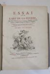 TURPIN DE CRISSE (Lancelot). — Essai sur l'art de la guerre. — Paris, Prault, Jombert, 1754, 2 vol. in-4, [6] ff. n. ch. (faux-titre & titre, privilège, f. blanc, dédicace à Louis XV), avec 25 pl. dépl. gravées sur cuivre par Dheulland,...