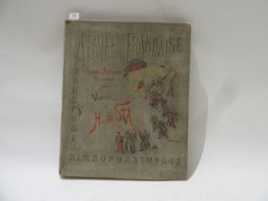 VANIER (Léon) et H. de STA. — Armée française. — Nouvel alphabet militaire. — Paris, Léon Vanier, 1883, petit in-4, 24 pl. en couleurs, toile grise illustrée en couleurs (rel. de l'éditeur).