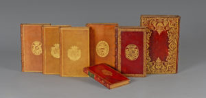 EXEMPLAIRE en MAROQUIN ROUGE orné d'UNE PLAQUE DORÉE (Rahir, type A), créée par Dubuisson.