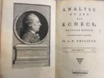 [ÉCHECS]. PHILIDOR (François André Danican, alias A. D.). Analyse du jeu des échecs. A Londres [Paris], 1777. In-8°, demi-basane, dos lisse orné (reliure de l'époque).