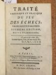 JOINT : Traité théorique et pratique du jeu des échecs. A Paris, Chez Stoupe, 1786. In-12, demi-basane, dos lisse orné (reliure de l'époque).