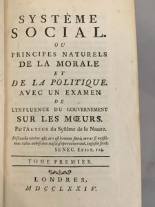 [HOLBACH (Paul Henri Dietrich d')]. Système social. Ou Principes naturels de la morale et de la …