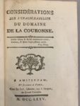 [VARENNE (Jacques)]. Considérations sur l'inaliénabilité du domaine de la Couronne. A Amsterdam, Chez