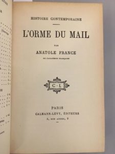 JOINT : FRANCE. L'Orme du mail. Paris, Calmann-Lévy, s. d. In-12, bradel, demi-vélin ivoire à coins, couv. cons. (rel. de l'ép.). 78e éd.