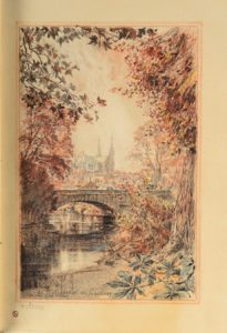 EXEMPLAIREUNIQUE ENRICHI d'un GRAND DESSIN ORIGINAL EN COULEURS SIGNÉ (nayant pas servi à l'illustration : la « Cathédrale de Chartres vue du Pont Neuf ») et de DEUX TIRAGE SUR SATIN (dont celui de l'illustration de la page 167).