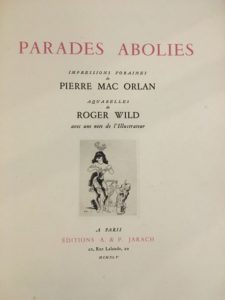 MAC ORLAN (Pierre). Parades abolies. Impressions foraines. Avec une note de l'illustrateur. A …