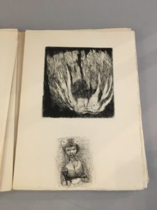 Tiré à 275 et quelques exemplaires, celui-ci (n° 9), UN DES QUINZE DE TÊTE comprenant UN DESSIN ORIGINAL (celui de la p. 73), UN CUIVRE (celui de la même illustration) et trois suites supplémentaires des illustrations : la première en noir avec remarques, la deuxième en premier état et la troisième en sanguine sur malacca teinté.