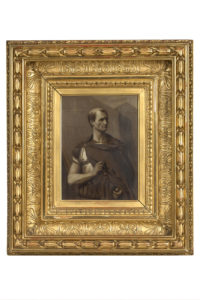 Jean-Léon GÉROME (Vesoul, 1824 - 1904, Paris) — Portrait de l'empereur Jules César Huile sur toile (toile d'origine) en grisaille — Signée en bas à gauche JL. GÉROME 27 x 20 cm — Dans son cadre d'origine en bois et stuc doré — Cette...