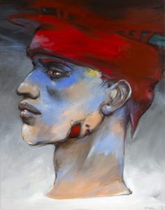 Enki BILAL (né en 1951) — « Oxymore Skin 3 » — Acrylique de couleur sur toile.— Signée et datée 2012 en bas à droite. — Contresignée, titrée et datée 2012 au dos. — 95 x 75 cm.