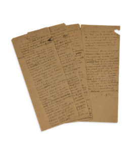 Belle évocation de l'art de Van Dongen à l'occasion d'une exposition de ses œuvres à la galerie Paul Guillaume (17-30 mars 1918). — Ce manuscrit de premier jet, avec des ratures et corrections, a servi pour l'impression de l'article, qui a paru le 15 mars 1918 dans le n° 1 de la revue Les Arts à Paris, actualités critiques et littéraires des arts et de la curiosité, fondée par le galeriste Paul Guillaume, et dont Apollinaire fut le rédacteur des deux premiers numéros, avant sa mort le 9 novembre 1918, huit mois après cet article.
