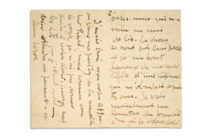«je suis tout heureux de me sentir libéré d'une infirmité qui m'obsédait depuis 5 ans. Je vais maintenant me remettre au travail, j'en ai le violent désir»... Il n'a donc pu lui répondre sur sa dernière nouvelle, et le prie de lui envoyer «les L.F. que j'attends avec un désir attendri en pensant à ce jeune héros»... Il le remercie chaleureusement ainsi que sa femme, pour les colis de lard et de beurre :