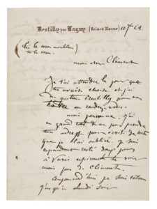 CARPEAUX Jean-Baptiste (1827 - 1875) — L.A.S. «JB Carpeaux», Rentilly par Lagny 10 septembre 1862, au peintre Félix-Auguste CLÉMENT ; 2 pages in-12.