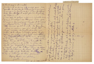 CHAISSAC Gaston (1910 - 1964) — L.A.S. «gaston chaissac», [1949], à Henri POULAILLE ; 3 pages petit in-4, adresse, à l'encre violette sur un bifeuillet de cahier d'écolier.