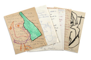 CHAISSAC Gaston (1910 - 1964) — 7 L.A.S. «Gaston Chaissac» avec dessins, Vix 1960 et s.d., à Enzo PAGANI, plus une gouache signée ; 12 pages in-4 au stylo à bille. Correspondance illustrée à son ami et galeriste milanais.