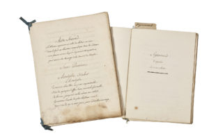 COYPEL Charles-Antoine (1694 - 1752) — 2 MANUSCRITS, Sigismond, Tragédie en trois actes ; 35 feuillets petit in-4 (plus qqs ff. blancs) en 4 cahiers cousus d'un ruban bleu, tranches dorées : et 32 feuillets in-4 en 3 cahiers cousus, tranches...