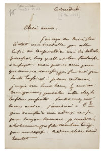 DELACROIX Eugène (1798 - 1863) — L.A., vendredi [6 mai 1853], à son amie la Baronne Joséphine de FORGET ; 1 page in-8, adresse avec cachet de cire rouge.