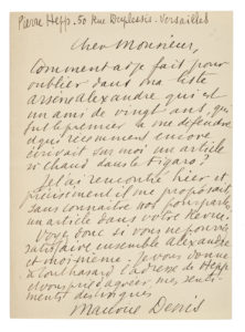 DENIS Maurice (1870 - 1943) — L.A.S. «Maurice Denis», à un directeur de revue ; 1 page in-12.