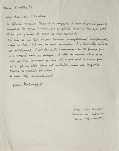 DUBUFFET Jean (1901 - 1985) — L.A.S. «Jean Dubuffet», Vence 31 octobre 1955, à Jean L'ANSELME ; demi-page in-4.