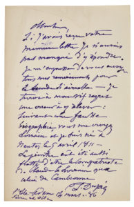 DUPRÉ Jules (1811 - 1889) — L.A.S. «J. Dupré», L'Isle-Adam 14 mars 1886 ; 1 page in-8 à l'encre violette.