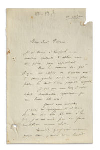 GAUGUIN Paul (1848 - 1903) — L.A.S. «P. Gauguin», 16 août [1880], à Camille PISSARRO ; 1 page et quart in-8 (petites déchirures).