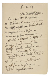 «Il faudrait mieux un dessin de début et en sup­primer un à la fin - Ne vous ai je pas donné un cliché de dessin ? 1907 ? [...] Faites vos tirages le plus noir et blanc possible - très vigoureux»... Christian Zervos va lui écrire «pour vous prier d'accepter de mettre dans chacun de vos numéros une feuille de souscription pour le livre de Tériade»...