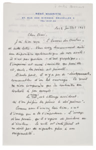 MAGRITTE René (1898 - 1967) — L.A.S. «RM», Bruxelles 12 juillet 1963, à André BOSMANS ; 2 pages in-8 à son en-tête.
