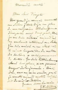 MILLET Jean-François (1814 - 1875) — L.A.S. «J.F. Millet», Mercredi matin, à Charles-Gabriel FORGET ; 1 page in-8 (trace d'onglet).
