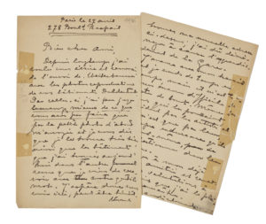 MONDRIAN PIET (1872 - 1944) — L.A.S. «P. Mond», Paris 27 avril [1936], à Alfred ROTH ; 2 pages grand in-8 (perforations réparées au scotch) ; en français. Sur l'architecture.