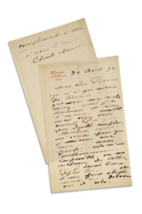 «Je n'ai pu pas encore pu trouver le reçu que vous me réclamez, mais je le trouverai et vous l'enverrai aussitôt. Mais soyez sans crainte il n'y a pas double emploi. MIRBEAU vient de m'écrire pour que je vienne avec eux chez vous Jeudi. Cela m'est malheureusement impossible. On me réclame des tableaux que je devais livrer depuis longtemps et il me faut absolument me débarrasser de cela»...