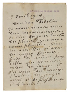 MONET CLAUDE (1840 - 1926) — L.A.S. «Claude Monet», Giverny, 9 avril 1914, au jardinier FIDELIN ; 2 pages in-8 (un peu salie).