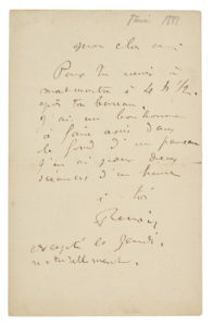 RENOIR AUGUSTE (1841 - 1919) — L.A.S. «Renoir», [8 février 1888], à un ami ; 1 page in-8.