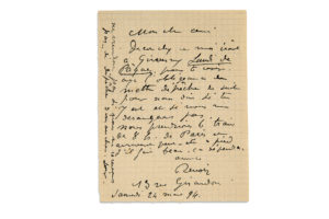 RENOIR AUGUSTE (1841 - 1919) — L.A.S. «Renoir», 13 rue Girardon 24 mars 1894, à Claude MONET; 1 page in-12.