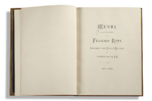 Les estampes portant la signature de Rops figurent sous les numéros 122, 125bis, 127, 129bis, 129ter, 131, 136, 136bis, 141, 142 et 146 ; sur la planche 71, Rops a porté cette mention autographe : «Ne pas juger d'après ces horribles épreuves». Plusieurs épreuves sont retouchées au crayon (planches 23, 28, 53, 54, 73, 110, 129ter, 143 et 155). Dans plusieurs cas on peut voir ici comment Rops a retravaillé au crayon ses épreuves en premier état et comment ces retouches ont été ensuite intégrées dans les états suivants : pour La Tentation (pl. 21 à 26), Le Paradis de Mahomet (53 à 56), Les Gaietés de Béranger (53 à 57), H. B. (73 à 75), Le Nouveau Parnasse satyrique (109 à 114), La Femme au trapèze (142 à 144) sur laquelle Rops a dessiné le caleçon imposé par la censure. La planche n° 1 est une épreuve sur Chine au nom de l'Imprimerie Nys & Momment où furent tirées les estampes de Rops.