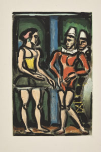 Véritable hommage aux clowns et aux saltimbanques, que l'artiste ne cessa de peindre, l'ouvrage est illustré de 73 gravures sur bois originales, dont 13 à pleine page, et de 17 aquatintes originales en couleurs hors texte. Un des 215 exemplaires sur vergé de Montval. Précieux exemplaire accompagné dans un emboîtage à part, d'une maquette originale du livre, portant quelques annotations d'Ambroise Vollard et d'autres collaborateurs du projet. Elle ne contient pratiquement aucune illustration. On y trouve également un tableau manuscrit donnant sur 2 pages la «Liste et dimensions des bois à graver», et 2 épreuves en feuilles des pages 75 à 78, dont une portant des corrections autographes de Rouault.