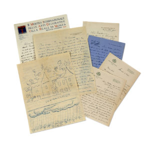 [Monza] Jeudi 30 [avril], en-tête de la IIa Mostra Internazionale delle Arte Decorative. Il est bien arrivé à la Villa Reale de Monza, «un vaste couvent sonnant le creux»... L'exposition n'ouvrira que le 10 mai. Sa salle est prête mais ses œuvres ne sont pas encore arrivées. «Monza serait bien si tu y étais pour faire remuer tout cela et y dépenser beaucoup de lires pour l'arranger»...