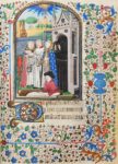 Très beau manuscrit réglé à l'écriture gothique claire et régulière à l'encre brune, 14 lignes par page, orné de 7 grandes miniatures placées dans ou à côté de riches encadrements variés.