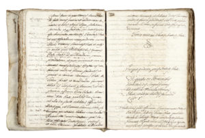 Manoscritto a inchiostro bruno. Corposissimo manoscritto. Testo in latino e italiano. Fascicoli legati in cartonatura dell'epoca (costola non più presente) e conservati in legatura in pergamena (quest'ultima con difetti). Carte in buono stato e ben leggibili. Dimensioni: 290x215 mm. (1)