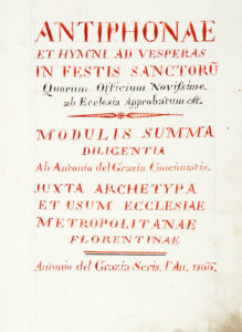 ANTIPHONAE et HYMNI ad vesperas in Festis Sanctorum — [...]. Datato 1866.