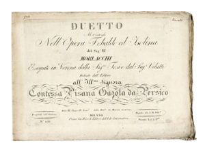 Partiture e spartiti con musiche di Gioachino Rossini, Alessandro Rolla, Luigi Spohr, Raimondo Boucheron, Pietro Generali, Stefano Pavesi, Diana Spada, Simon Mayr, Francesco Morlacchi ecc.