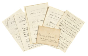 MASSENET Jules, Raccolta di 9 lettere autografe, 1 telegramma autografo, 2 biglietti da visita con annotazioni autografe. — Datati 1895.