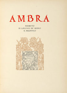 ANTONY De Witt Antonio Paolo, Ambra. — Poemetto di Lorenzo de' Medici il Magnifico. — Firenze : IDEA Alinari, 1920 ca. — In-folio piccolo (mm 345x250).