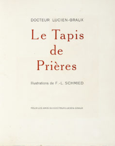 GRAUX Lucien, Le Tapis de Prières.— Illustrations de F.-L. Schmied. — [Paris]: pour les Amis du Docteur Lucien-Graux, 1938. — In-4° (mm 305x250).