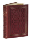 Bella legatura in piena pelle rossa con cornici di filetti concentrici e decorazioni impresse in oro e a secco ai piatti, titolo in oro al dorso.