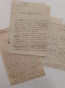 BIBLIOGRAPHE - PHILOLOGUE - ÉDITION SCIENTIQUE JOHANNEAU Eloi (1770-1851). Ensemble de 2 lettres autographes signées et une bluette autographe signée à Monsieur Beuchot [Adrien-jean-Quentin (1777-1851)] et à Monsieur François de Barbé-Marbois, Montreuil, 28 septembre 1823 et Paris, 27 mai 1830. 10 pp. ½ in-8.