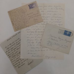 Dans sa carte d'avril 1955 elle évoque avec émotion la douceur de vivre dans le Sud-Ouest de la France « La chasse au sanglier nous a amenés jusqu'à Périgueux et nos cochons privés sont à la recherche des truffes que nous comptons déguster arrosées d'un bon vin de l'Aquitaine (...) nous regrettons que vous ne participiez pas aux plaisirs de la douce France ! (...) » ; le 6 juillet elle évoque Jean Arp et son travail « arrivée à Bâle je ferai photocopier quelques pages (...) et vous l'enverrai ainsi que le dessin des poèmes que Jean suggère. (...) »