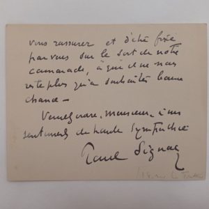 Il revient sur l'annonce de la mort de Albert Gleizes « (...) il est certain que le bruit de sa mort, qui nous a été annoncée au Comité des Indépendants en Décembre, est faux : je suis très heureux de vous rassurer et d'être fixé par vous sur le sort de notre camarade (...) ».
