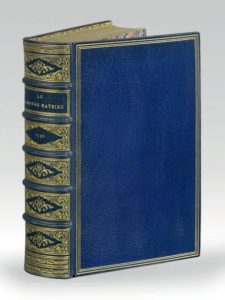 [DU LAURENS (l'abbé Henri Joseph)]. * Le Compère Matthieu, ou les Bigarrures de l'esprit humain. S.l., Imprimerie de Patris, 1796. 3 tomes en un volume in-8, maroquin bleu, triple filet doré, dos orné, dentelle intérieure, tranches dorées sur marbrure (Chambolle-Duru).