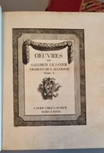 Illustration dessinée et gravée en taille-douce par Salomon Gessner lui-même, comprenant 2 titres gravés, 20 (10 + 10) figures, des en-têtes et de nombreux culs-de-lampe.