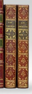 VOLTAIRE. La Henriade. Nouvelle édition. [Paris], Veuve Duchesne, Saillant, Desaint, Panckoucke et Nyon [Imprimerie de Barbou], s.d. 2 volumes in-8, maroquin rouge, triple filet doré, fleuron aux angles, dos lisse orné, fer à la grenade répété, pièces de titre et de tomaison, roulette intérieure, tranches dorées (Reliure de l'époque).