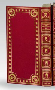 MASSON (Frédéric). Napoléon et les femmes. Paris, Librairie Borel, 1897. In-12 format agenda, maroquin rouge, bordure ornée d'abeilles avec chiffre couronné dans les angles, dos orné de ce chiffre répété, dentelle intérieure, tranches dorées, couverture, étui (E. Carayon).